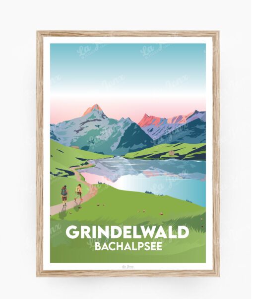 Cette affiche / Poster de Grindelwald – Bachalpsee est imprimée en Suisse 🇨🇭 sur du papier de qualité et éco-responsable. Elle s’intègrera parfaitement à votre décoration murale et constitue également une idée parfaite de cadeau suisse. Ce poster artistique met en valeur la région de Grindelwald, nichée au cœur des Alpes suisses, avec pour horizons le majestueux Bachalpsee.