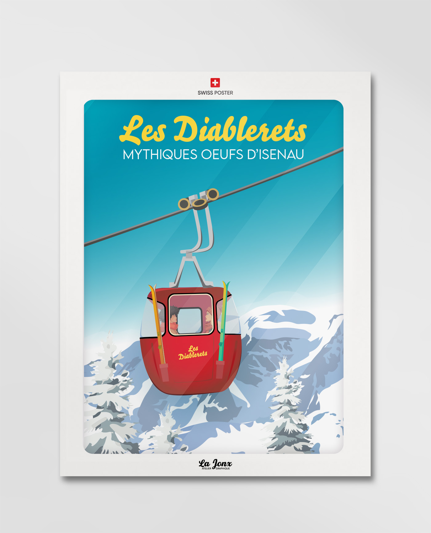Affiche / Poster des célèbres oeufs d’Isenau, de la station des Diablerets, imprimé en Suisse 🇨🇭 sur papier de qualité éco-responsable.