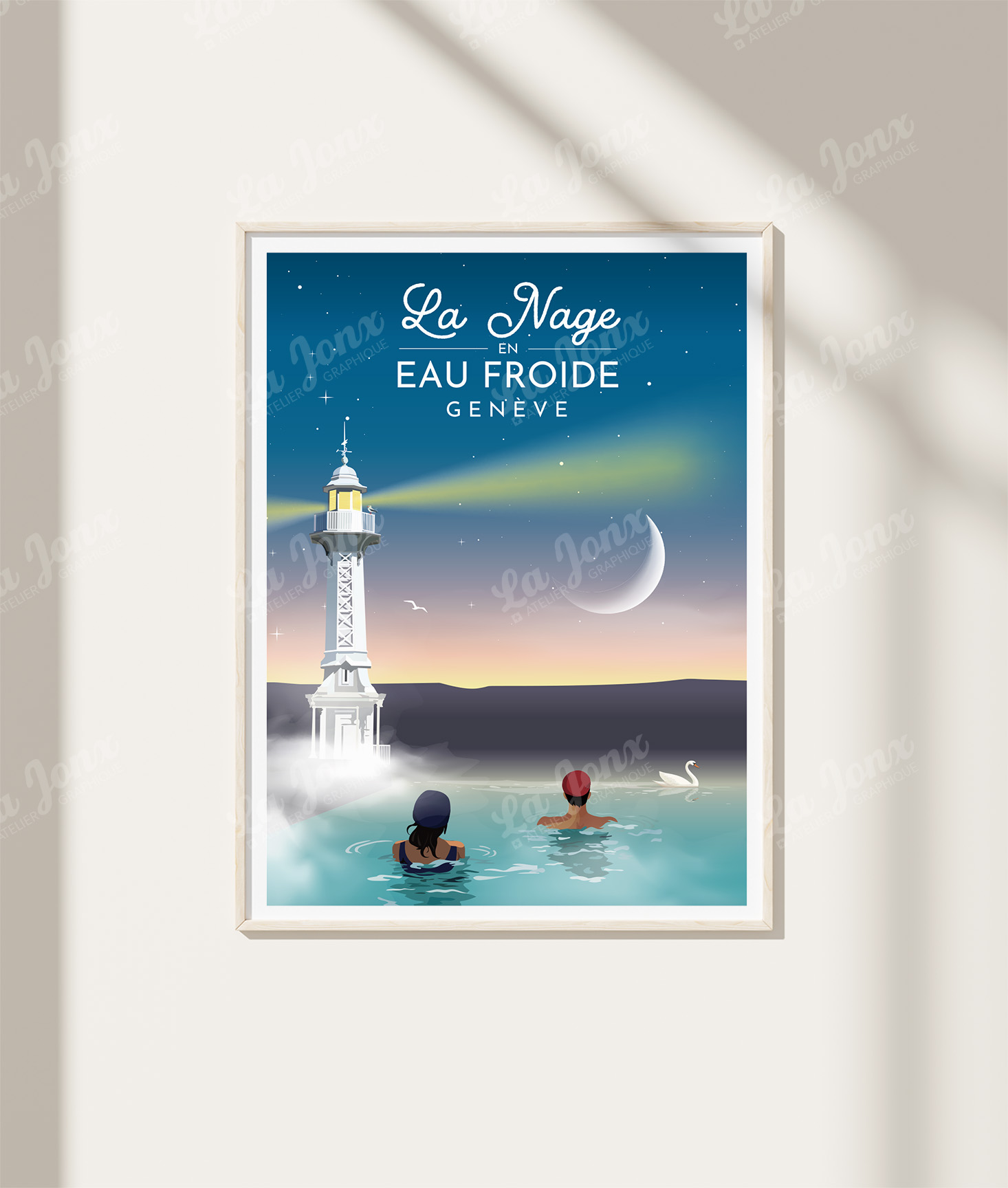 Ce poster artistique célèbre Genève, petite phrase descriptive du sujet