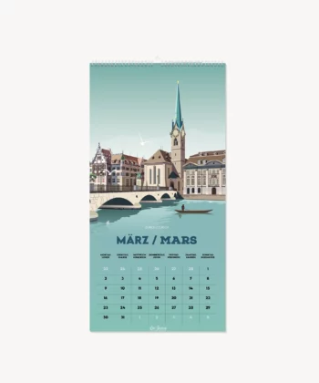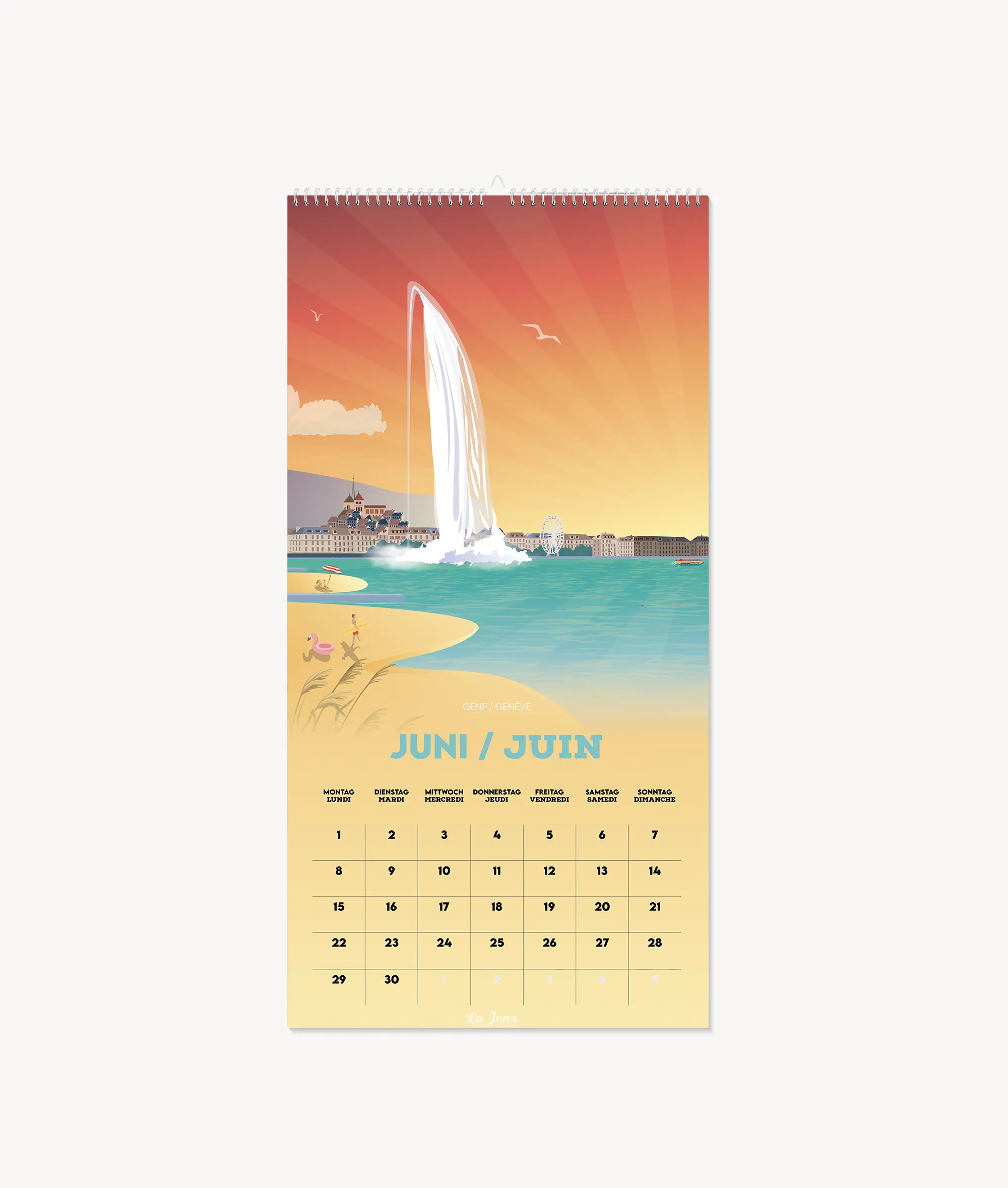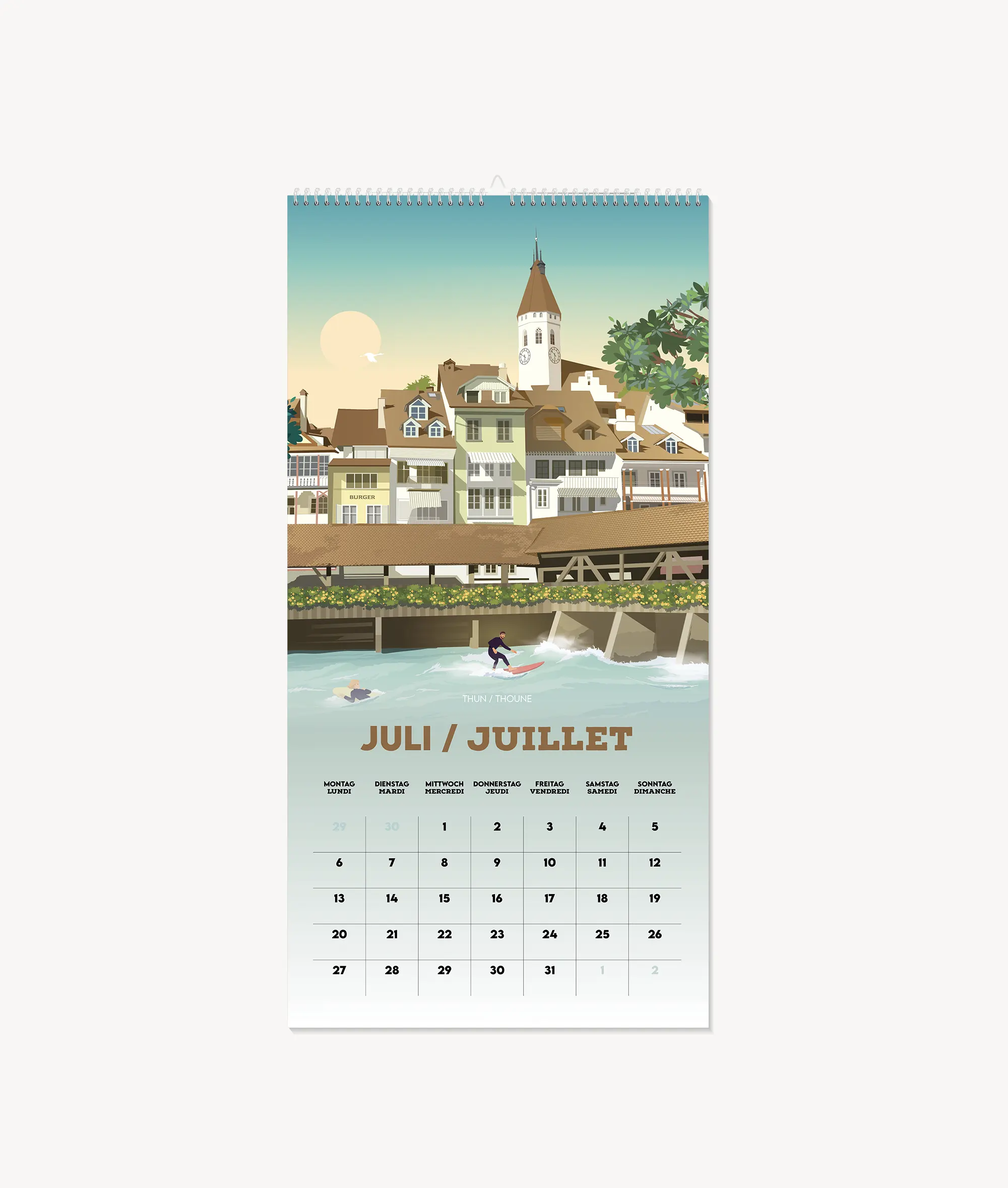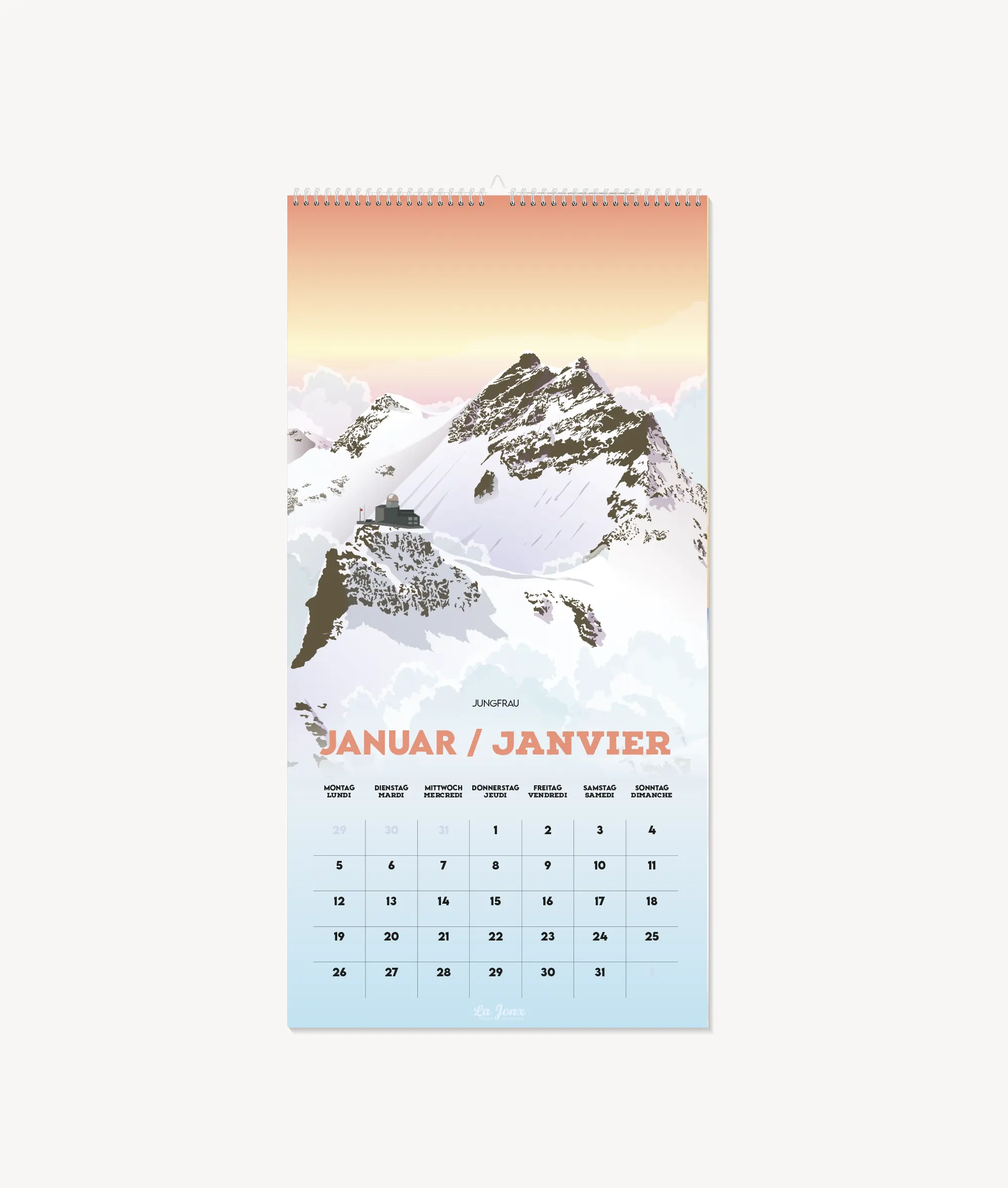Découvrez la Suisse autrement grâce à ce calendrier 2026 illustré au format vertical 42 × 21 cm, pensé pour accompagner votre année avec poésie et évasion! 🗓️