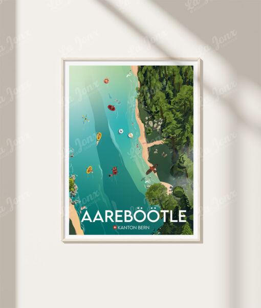 This Aareböötle poster is an original creation, hand-drawn and printed in Switzerland on quality paper. A perfect Swiss gift.